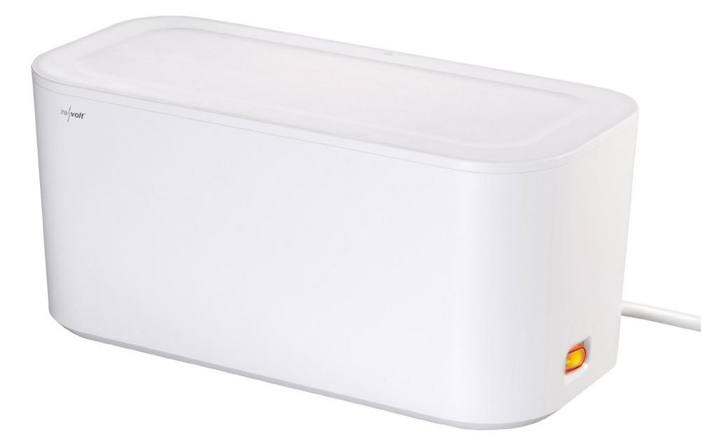 Stromversorgung für bis zu sieben Geräte: Die Mehrfach-Steckdose in einer Kabelbox von revolt versorgt bis zu sieben Geräte wie Computer, Drucker oder Smartphones gleichzeitig mit Strom. Zwei USB-Anschlüsse ermöglichen das direkte Aufladen von USB-Geräten.