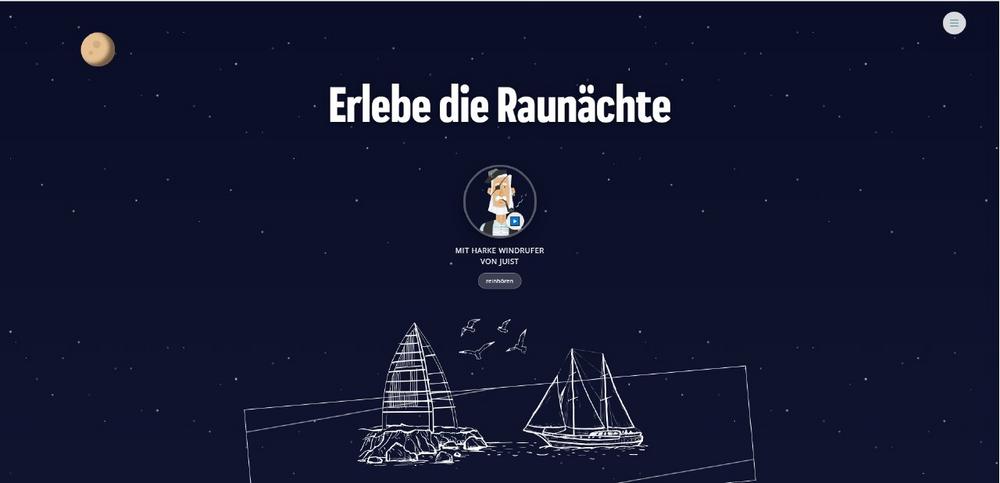 Alle Audio-Inhalte sind aber zeitlich ungebunden auf allen gängigen Podcast-Playern sowie auf https://seezeichen.juist.de/raunacht/ kostenfrei erlebbar.