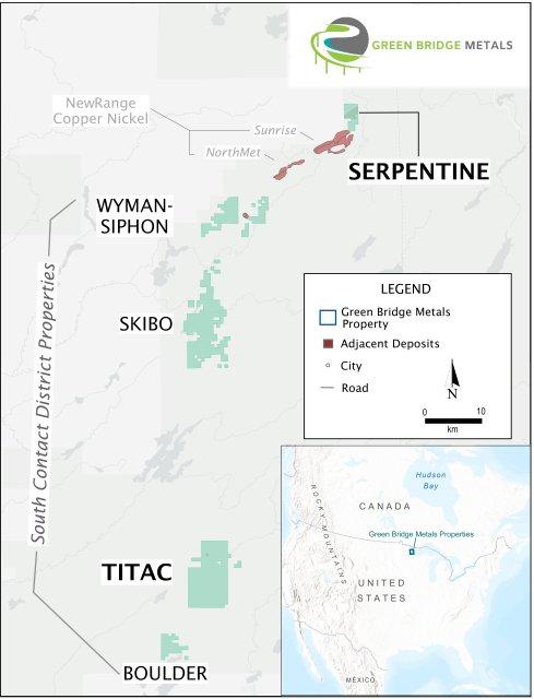 Green Bridge Metals Corporation ist ein in Kanada ansässiges Explorationsunternehmen, das sich auf den Erwerb und die Weiterentwicklung von Projekten mit kritischen Mineralvorkommen in etablierten Bergbaujurisdiktionen konzentriert. Der South Contact District des Unternehmens in Minnesota beherbergt Mineralisierungen mit Kupfer, Nickel, Titan, Vanadium und Elementen der Platingruppe, die mit dem Duluth Complex in Zusammenhang stehen.