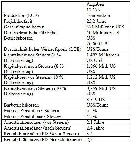 – NPV vor Steuern von 1,49 Milliarden US$ bei einer Diskontierung von 8 %;