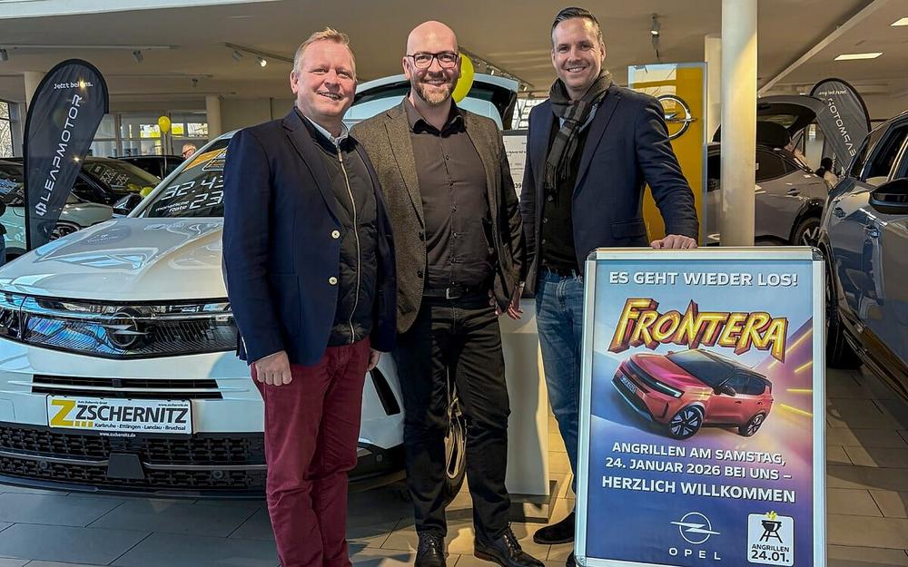 Gelungener Jahresauftakt bei den Opel-Händlern: Deutschlandweit lud der Hersteller gemeinsam mit seinen Partnern am Wochenende zum „Großen Angrillen bei Opel“ in die Autohäuser. Zahlreiche Kunden und Interessierte ließen sich die Chance nicht entgehen, den Opel Frontera und viele weitere Modelle live zu erleben und mehr über die attraktiven Konditionen zu erfahren. Das Ganze in lockerer Atmosphäre mit kulinarischen Leckereien vom Grill. Mittendrin waren dabei auch Opel-Vertreter wie Opel Deutschland-Markenchef Patrick Dinger und Arnaud Ribault, Senior Vice President Global Sales and Head of Enlarged Europe, die verschiedenen Autohäusern ihren Besuch abstatteten und mit den Opel-Kunden und -Fans ins Gespräch kamen.