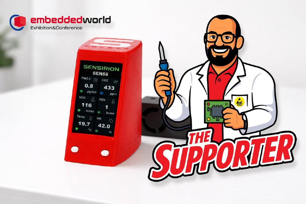 So präsentiert der SUPPORTER als technisches Gadget einen kleinen Luftqualitätsmesser, der auf dem SEN66 der SEN6x-Familie des Schweizer Herstellers SENSIRION basiert.