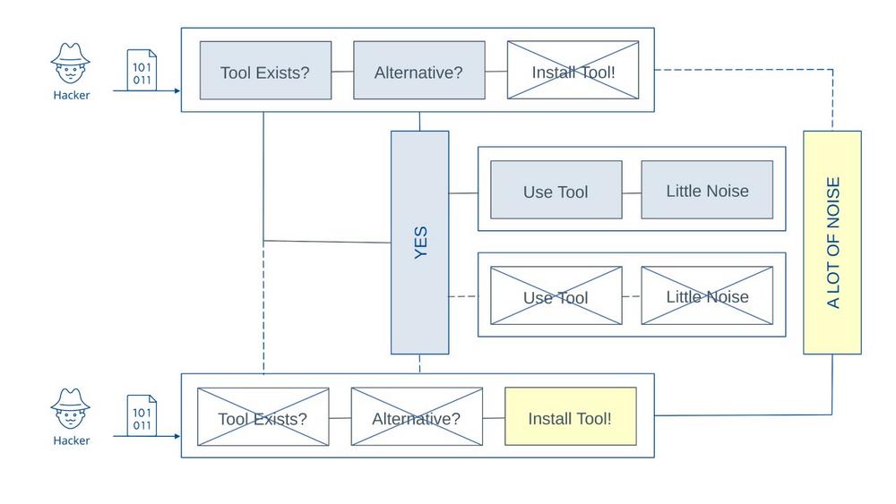 The study analyzes the critical decision points attackers face after gaining initial access to a compromised system. At this juncture, adversaries must choose between three primary operational paths: leveraging existing tools already present on the system, installing specialized hacking utilities, or pivoting to alternative attack methodologies using native system capabilities. Each path generates distinct "noise" profiles in the form of behavioral signatures that sophisticated deception environments can capture, analyze, and weaponize for early detection.