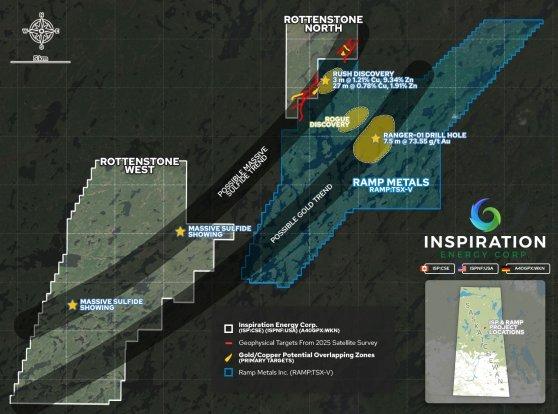 Inspiration Energy ist ein kanadisches Mineralexplorationsunternehmen, dessen Hauptaugenmerk auf den Erwerb und die Erschließung vielversprechender Gold- und Basismetallkonzessionen gerichtet ist. Mit seinen Vorzeigeprojekten Rottenstone North und Rottenstone West ist das Unternehmen einer der größten Landbesitzer in einem der neuesten und aufregendsten Gold-Kupfer-VMS-Entdeckungskorridore (vulkanogene Massivsulfide) Kanadas. Weitere Informationen finden Sie in den Unternehmensinformationen auf SEDAR+ (www.sedarplus.ca).