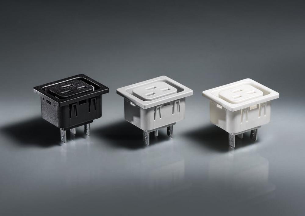 Erhältlich in Schwarz, Weiß oder Grau bietet die 4792 Geräteeinbausteckdose mehr Gestaltungsfreiheit für unterschiedliche Anwendungen. Mit mehreren Anschlussoptionen (Standard: QC 6.3 mm; auf Anfrage QC 4.8 mm, Löt- oder Leiterplattenanschlüsse) bietet sie verschiedene Verdrahtungsmöglichkeiten. Zertifiziert nach VDE, UL und CCC garantiert die Geräteeinbausteckdose weltweite Konformität und Sicherheit.