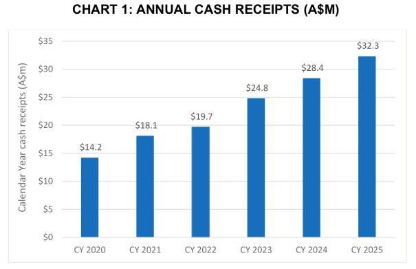 De.mem erzielte weiterhin eine starke Wachstumsdynamik mit 27 aufeinanderfolgenden Quartalen mit Wachstum der Cash-Eingänge gegenüber dem entsprechenden Vorjahreszeitraum („pcp“). Das Unternehmen erwartet, diese Wachstumskurve in CY 2026 fortzusetzen (Diagramm 2).