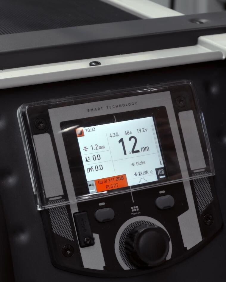 Einfach 3 Daten eingeben (Drahtdurchmesser, Material/Gas, Materialstärke) – und das Gerät ermittelt automatisch die optimalen Schweißparameter.