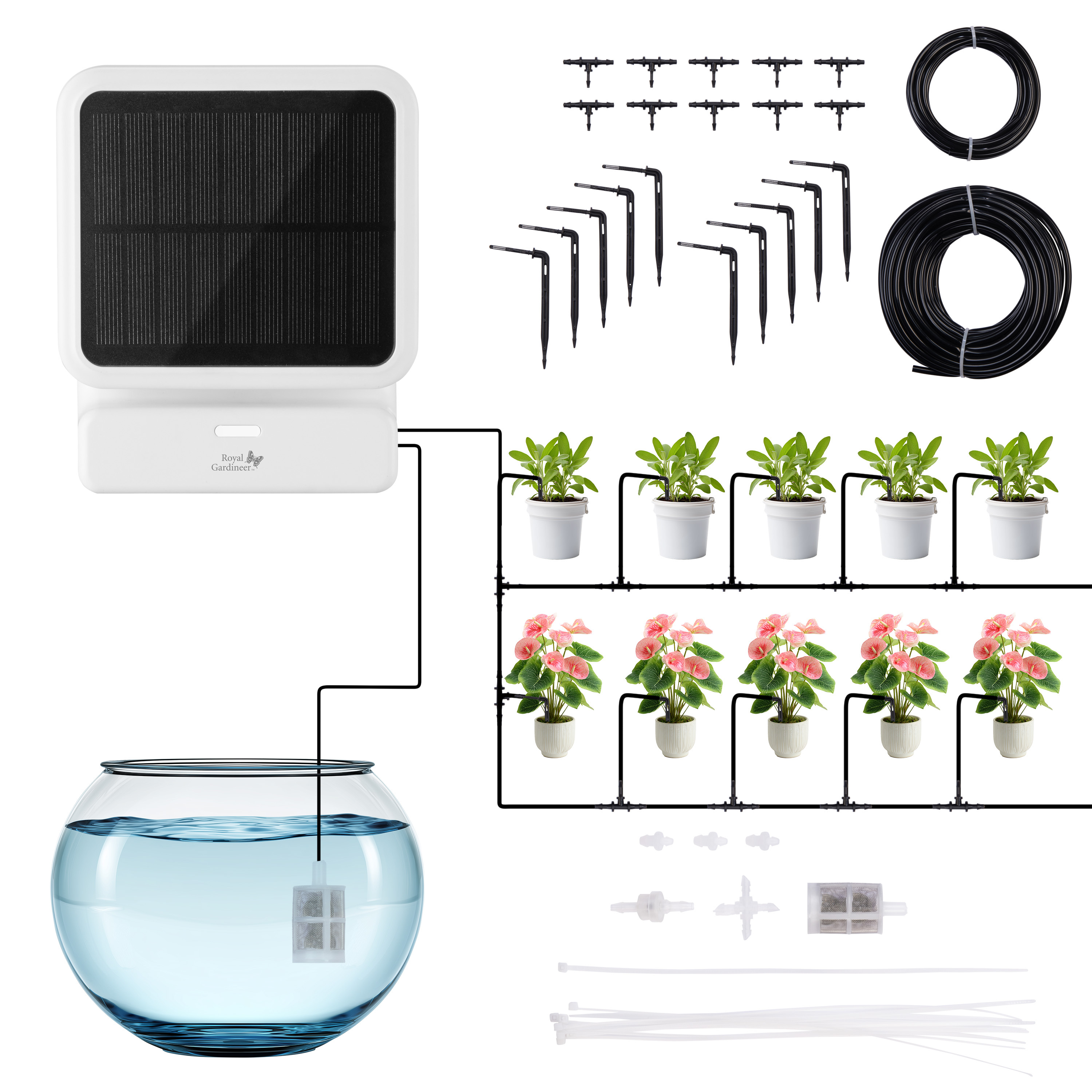 Royal Gardineer Smartes WLAN-Solar-Bewässerungssystem BWC-645 mit Pumpe, 30 l/Std., Akku, App
