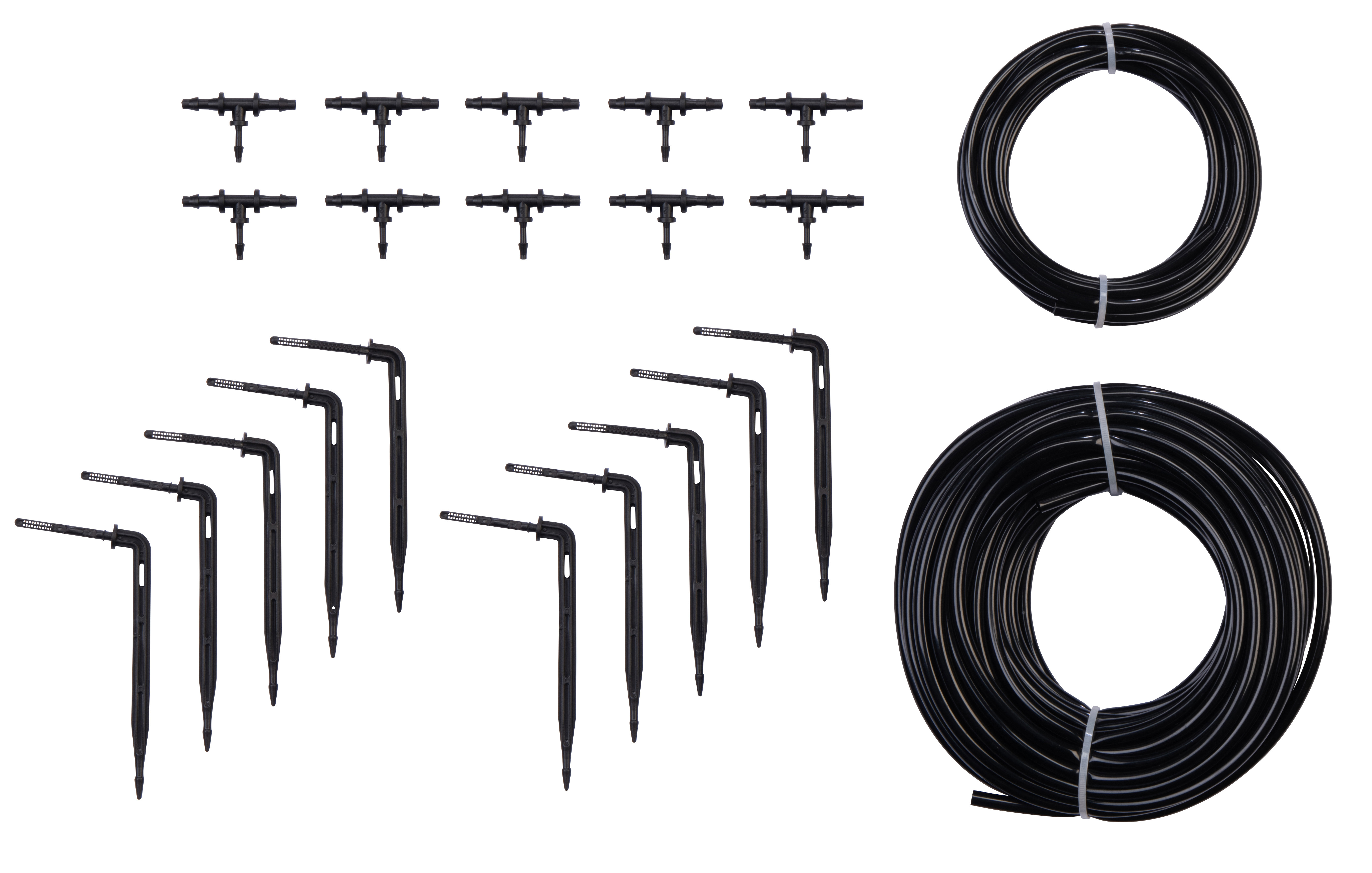 Feine Tropfbewässerung für bis zu zehn Pflanzen: Das Mikro-System verteilt Wasser gezielt an mehreren Töpfen gleichzeitig und reduziert Verdunstungsverluste. Die Tropfen erreichen direkt die Wurzeln – ob Kräuterregal, Tomaten am Geländer oder Zimmerpflanzen im Außenfenster.