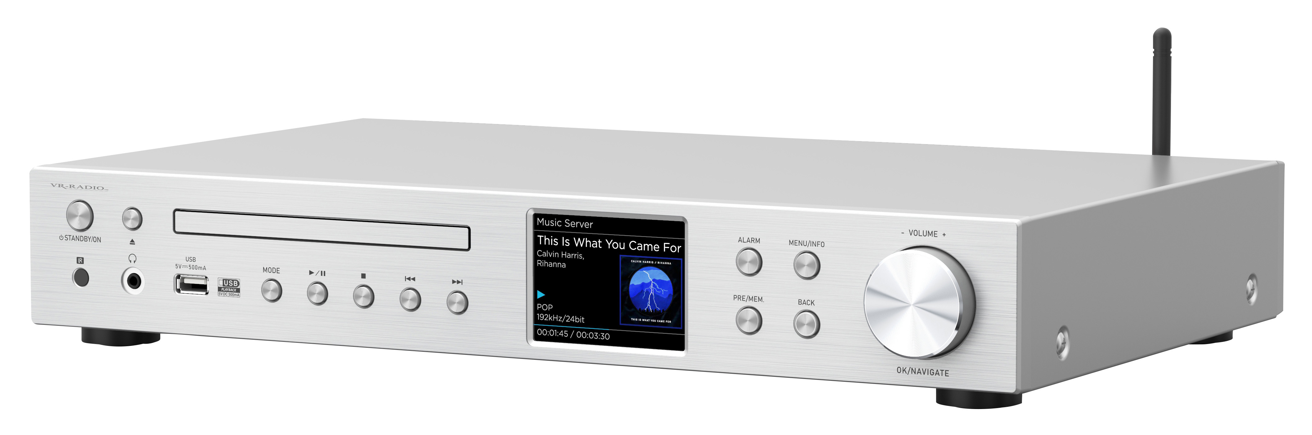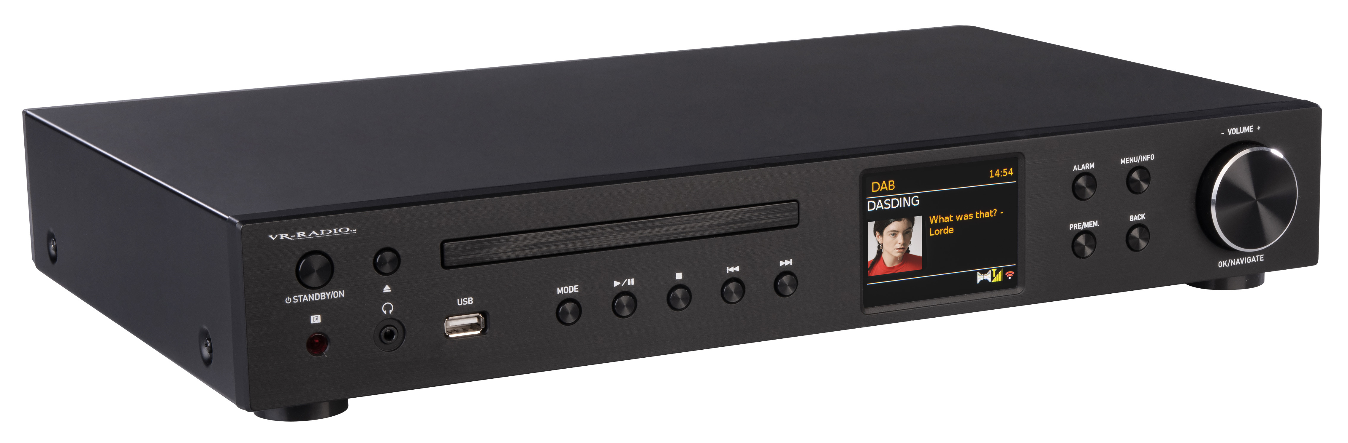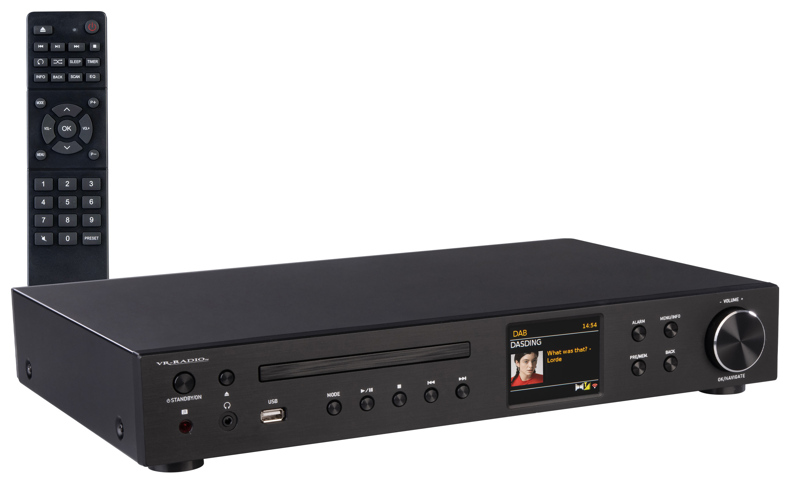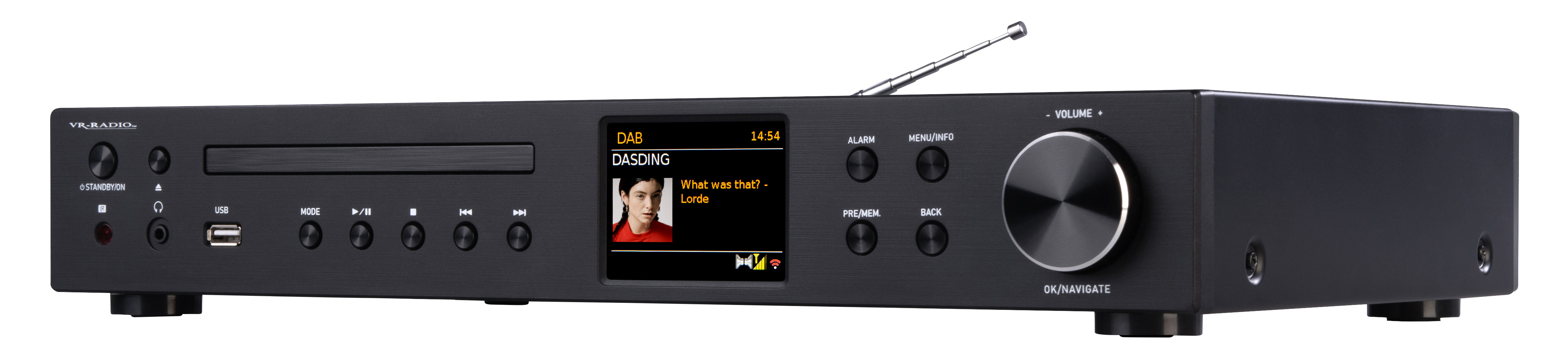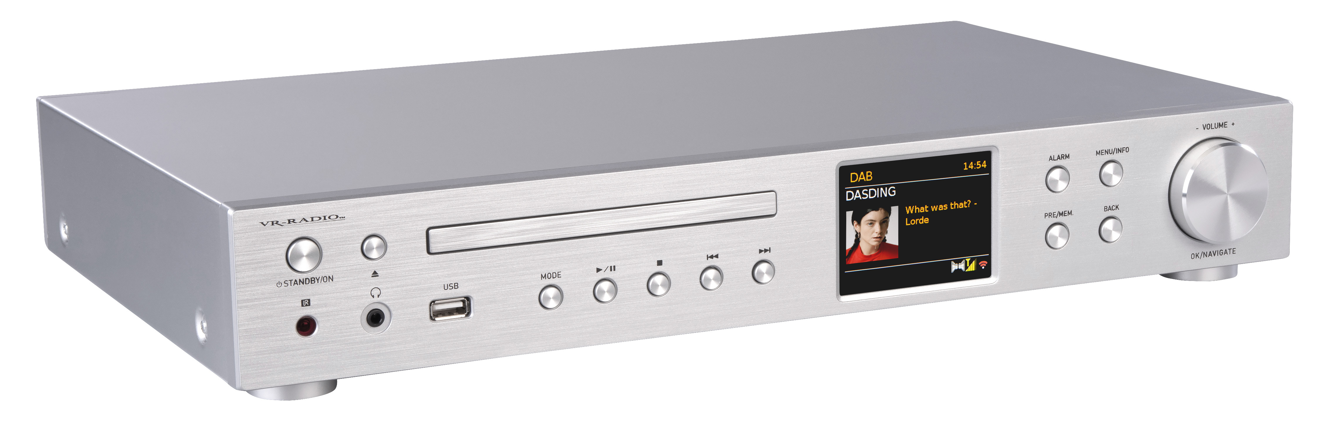 Klarer Klang, grenzenlose Auswahl: Der WLAN-Internetradio-Receiver von VR-Radio vereint DAB+, UKW, CD-Player und Bluetooth in einem Gerät. Radiosender, Streaming-Inhalte und CDs lassen sich mühelos kombinieren – ganz ohne Gerätewechsel.