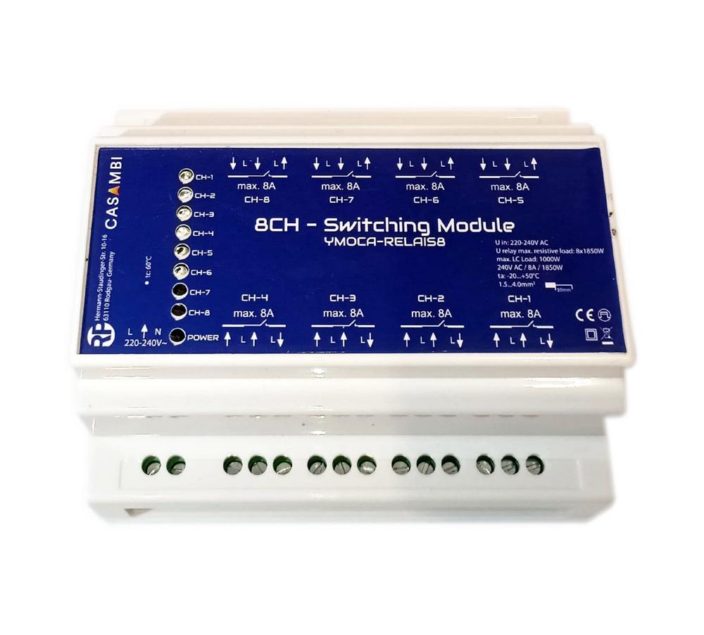 Das CASA RELAIS8 ist mit acht potentialfreien Schaltkontakten ausgestattet. Für jeden dieser Kontakte lässt sich die angegebene maximale Schaltleistung unabhängig realisieren.