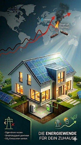 Since late February 2026, shipping traffic in the Strait of Hormuz has been virtually at a standstill – affecting 20 percent of the world’s oil and LNG. The result: volatility in energy markets that directly impacts German household electricity prices. At the same time, negative electricity prices on sunny days and EEG reforms are making self-consumption more attractive than ever. Those who install a rooftop system with storage now will see faster amortization and long-term protection against price shocks.