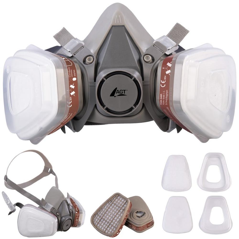 AGT Wiederverwendbare Atemschutzmaske AS-100 mit je 2 Gas- und Partikelfiltern