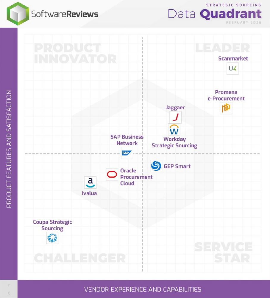 Die Data Quadrant Reports von Info-Tech, die auf deren SoftwareReviews Plattform basieren, sind in der Beschaffungstechnologiebranche einzigartig, da die Rankings auf verifizierten Bewertungen von Endnutzern beruhen und so die tatsächliche Leistungsfähigkeit jeder Lösung in einer Reihe von entscheidenden Bereichen widerspiegeln. Die Nummer-1-Platzierung von „Scanmarket by Unit4“ zeigt, dass Kunden die Plattform sowohl hinsichtlich der Produktfunktionalität als auch der Kundenerfahrung durchweg besser bewerten als die Konkurrenz. Der Bericht für 2026 hebt die Stärken von „Scanmarket by Unit4“ über den gesamten Beschaffungszyklus hinweg hervor, wobei die Plattform in folgenden Bereichen besonders gut abschneidet: