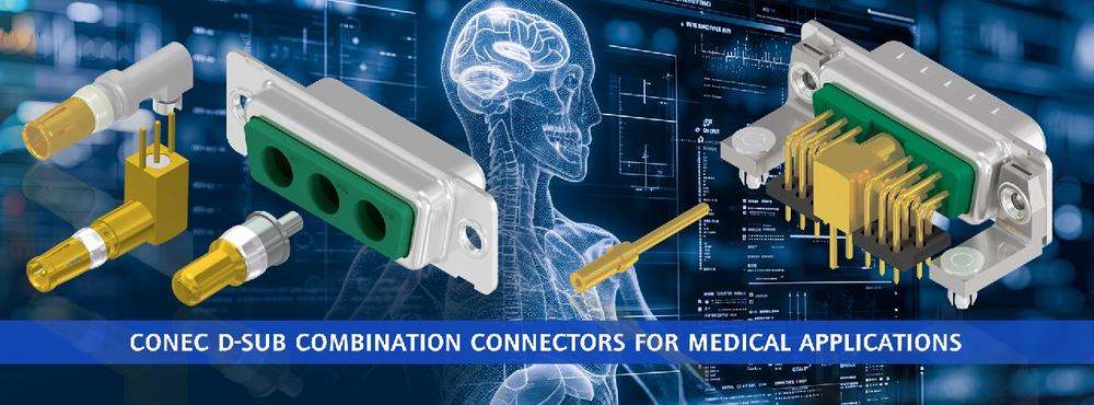 CONEC D-SUB Combination connectors are used in a wide range of demanding applications, including image-guided medical technology. In interventional radiology devices and cardiovascular X-ray systems, they serve as the interface between the motor and the motion controller.