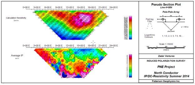 – Zadar Ventures Ltd. führte 2013 und 2017 sowohl eine geophysikalische DC-Resistivitätsvermessung als auch eine Radonmessung auf dem Projekt CLR durch und definierte das primäre Explorationsziel: eine rund 4 km lange resistive Anomalie, die generell von Norden nach Süden streicht und mit Radongasanomalien, einem Uranzerfallsprodukt, übereinstimmt.3, 4