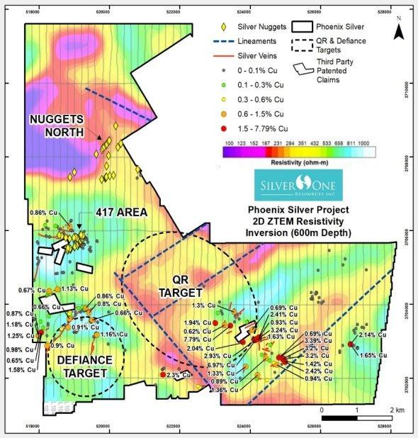 Diese silberreichen Gangsysteme treten entlang nach Nordost ausgerichteter struktureller Korridore auf, die in der Vergangenheit die Entdeckung bedeutender Porphyrzentren im gesamten Bezirk geleitet haben. Das Silberprojekt Phoenix von Silver One liegt entlang desselben nach Nordost streichenden Struktur- und Alterationskorridors, etwa 5 Kilometer nordöstlich der Minen Copper Cities von Freeport-McMoRan und der Entdeckung Ocelot von BHP, und befindet sich damit genau in einem nachgewiesenen Mineralisierungsgürtel, in dem oberflächennahe Silbersysteme und tiefere porphyrische Kupferlagerstätten genetisch miteinander verbunden sind.
