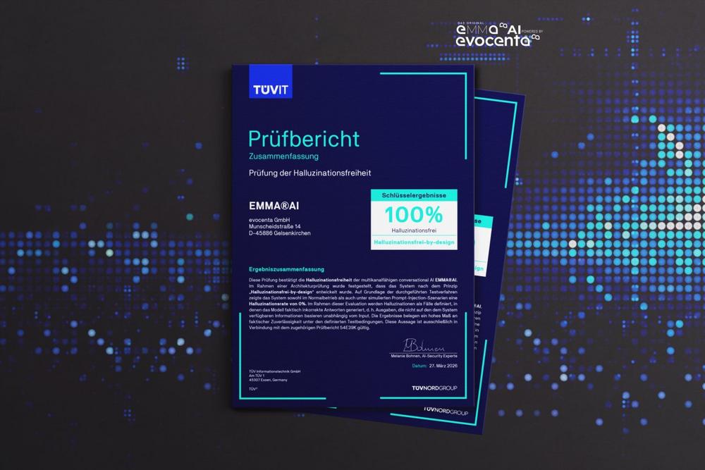 TÜVIT prüft erste KI-Lösung als 100 % halluzinationsfrei – EMMA®AI Vorreiter bei vertrauenswürdiger KI